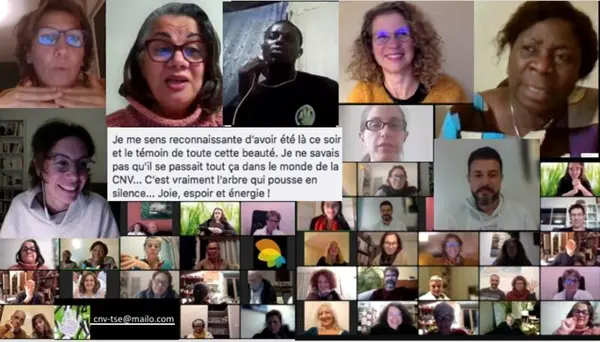 Voici ce que témoigne Clothilde Dumont de cette initiative : « Pour la CNV-TSE, je suis membre fondateur et toujours active, même si c’est principalement Sophie Lewandowski, la source du projet, qui porte. J’ai participé le 16 novembre au webinaire, rendez-vous annuel animé ici par Sophie et Emilie Chapuis. Il y a aussi un week-end par an en présentiel auto-géré.Ce que j’en garde c’est la proximité et la profondeur des partages malgré le nombre que nous étions et les témoignages divers et variés (Cissao sur la paix en Casamance, Léontine sur un projet de centre de formation au Burkina, Tarik sur la gouvernance des entreprises au Maroc, moi sur l’accompagnement des enfants en homeschooling.)